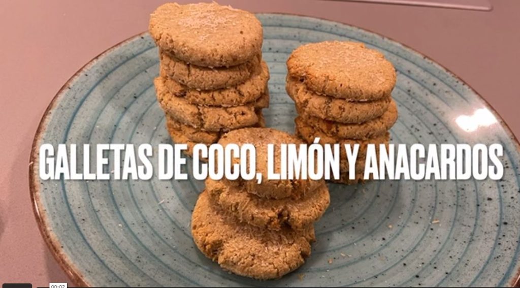 Ingredientes 4 dátiles deshuesados 60g de anacardos 50g de coco rallado 1cda de esencia de vainilla 1 huevo 120g de