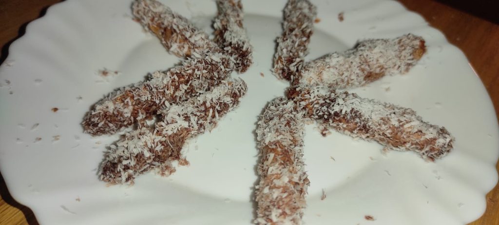 Ingredientes 3 dátiles deshuesados 80g de coco rallado 1cda de esencia de vainilla 1 huevo Preparación Preparar todos los