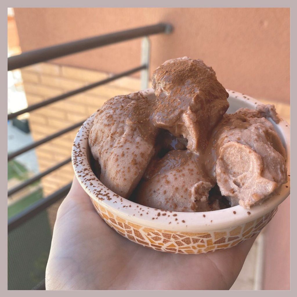 👉Hacemos un vaso de leche (unos 250- 300 ml) con cacao puro (y unas gotitas de edulcorante *Opcional*) Congelamos mínimo