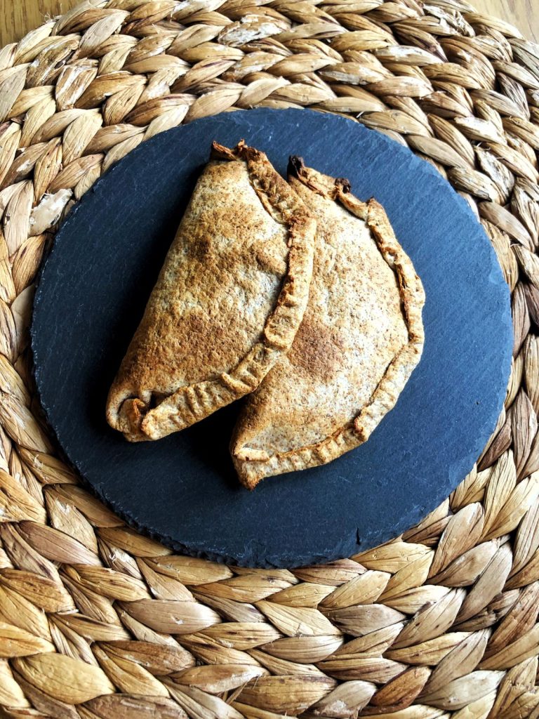 3️⃣ Rellenamos las tortitas, pincelamos los bordes de las tortitas con agua para que sellen mejor y cerramos presionando con un tenedor.